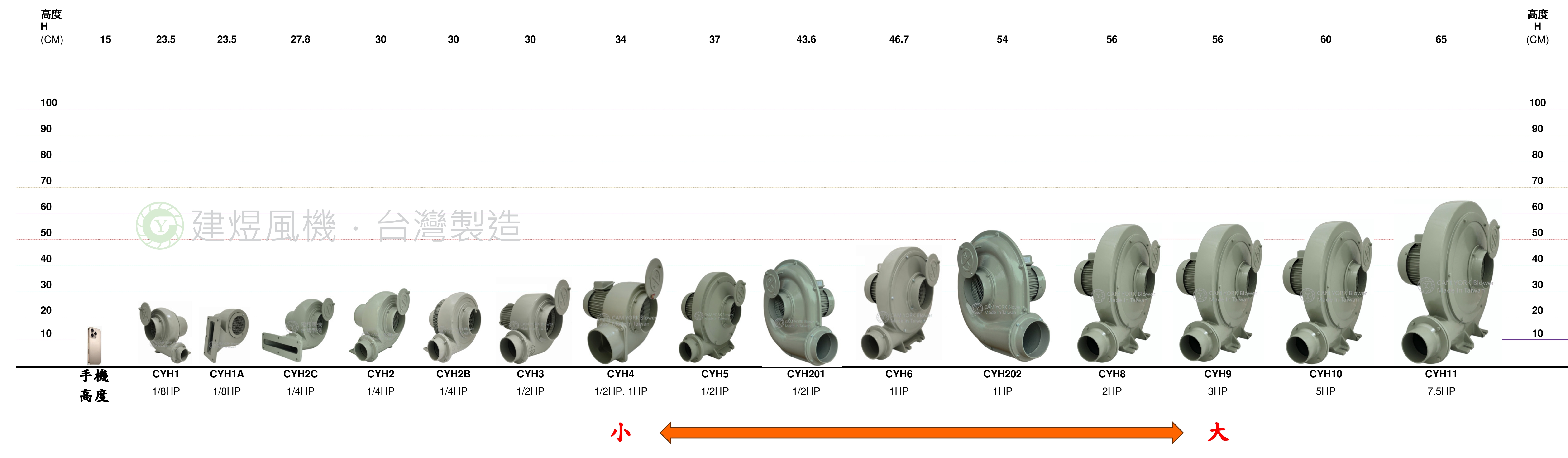 CY系列 (2極,13W~3HP, 前傾多翼式送風機)